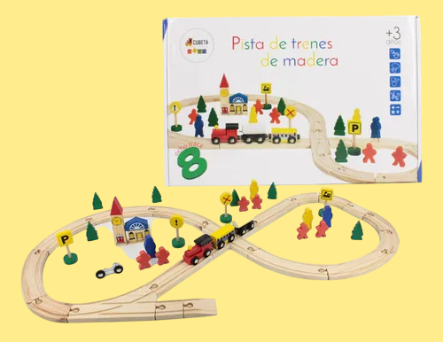 Pista de trenes de madera Cubeta Toys – ¡diversión clásica y educativa!