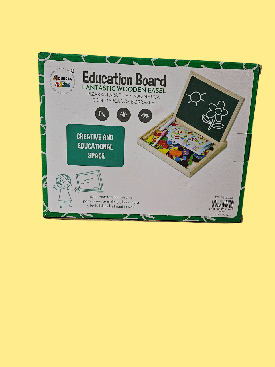 - Incluye: 70 piezas imantadas, 1 borrador, 2 tizas y papel con figuras para copiar.